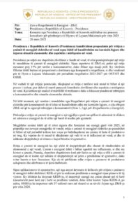 Predsedništvo Republike Kosovo se protivi predlogu povećanja cene električne energije u zemlji, jer je ovaj predlog suprotan zakonskom okviru koji obavezuje RUE da brine o zaštiti potrošača i ignoriše ekonomsku situaciju i aspekt blagostanja u zemlji. Kao i u vanrednom razmatranju 2023. godine, Predsedništvo je analiziralo konsultativne izveštaje o usklađivanju maksimalno dozvoljenih prihoda energetskih operatera i svoje komentare je već dostavilo RUE-u.